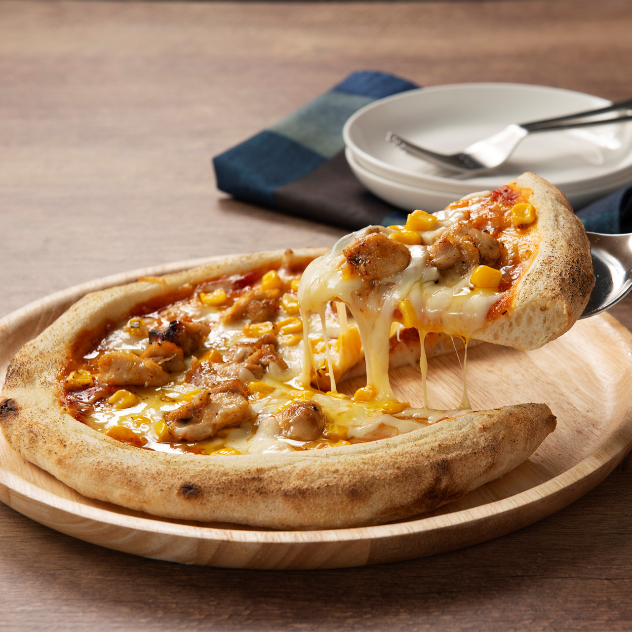 1枚1枚手延ばしで製造を行い、外はサクッと中はもっちりとした食感が特徴の冷凍ピザです。